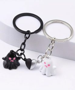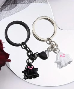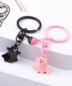 Black Ghost Cartoon Key Button Halloween Key Ring Bag Accessories