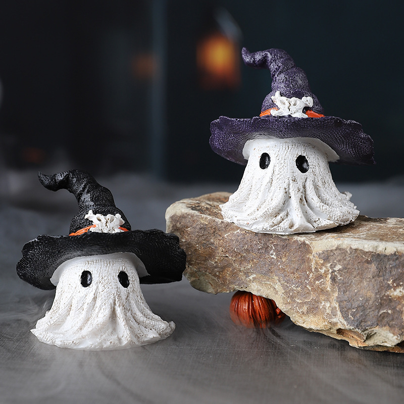 Resin Decoration Halloween Wizard Hat Ghost Ornaments