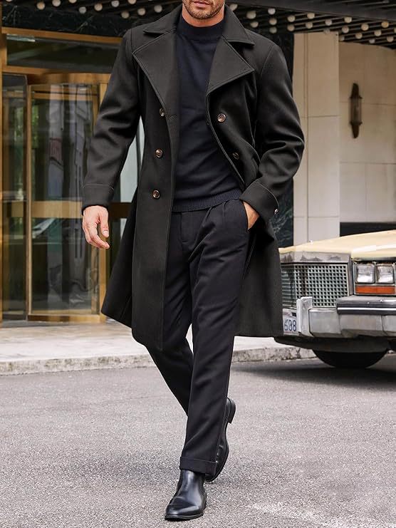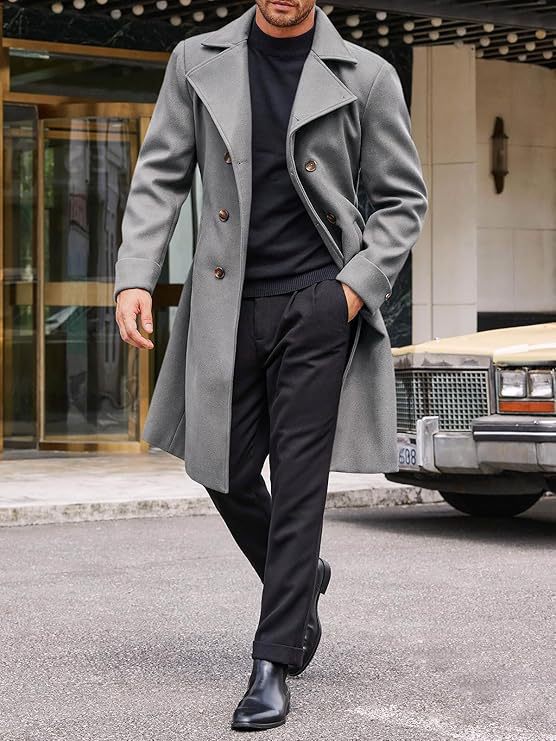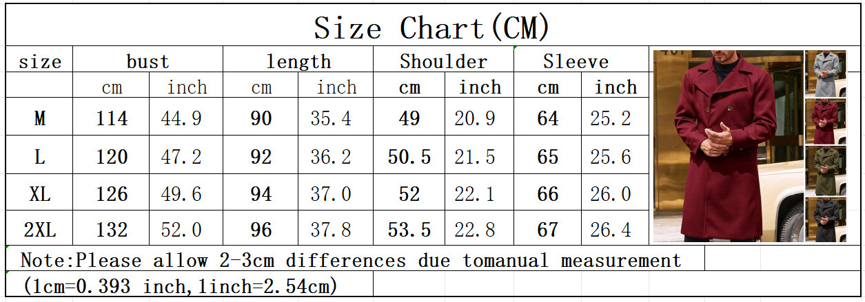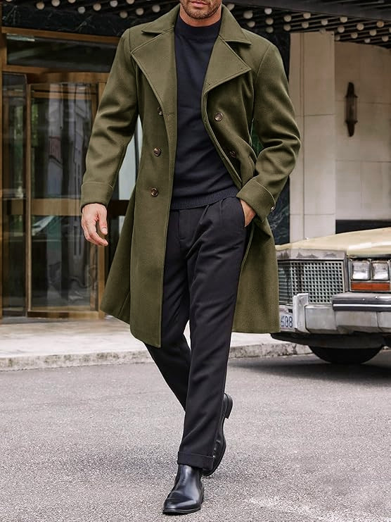 Woolen Male Double-breasted Thickened Woolen Trench Coat